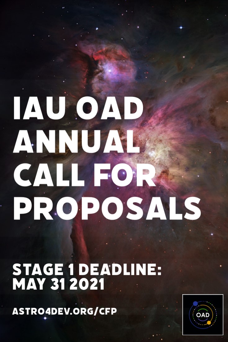 Deadline for Stage 1 is May 31, 2021 (midnight UTC-12).Contact: info@astro4dev.org